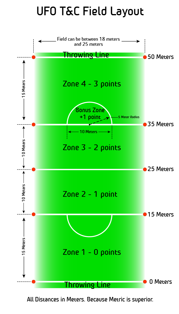 Er zijn verschillende frisbee formaten. Wij gaan die van UFO gebruiken. Deze wordt namelijk op dit moment het meeste gespeeld in Europa.